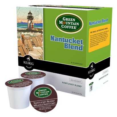 Up for grabs is 1 box of Green Mountain Medium Roast Nantucket blend coffee. It’s an 18 pack that retails for about $13-14.
